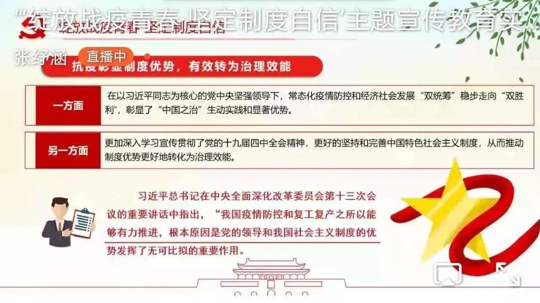 疫情爆发以来,无数青年人主动请命,义无反顾奔赴“疫”线战场,用青春和热血铸就了新时代青年人的风采。为彰显青年责任,宣扬奉献精神。英国上市公司官网365团总支举办“绽放战疫青春·坚定制度自信”主题宣传教育实践活动——(一)“青年大学习”行动。本次活动以线上直播的方式开展,参加本次活动的有2018级和2019级全体同学。